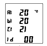 1)如圖1分別顯示:第1路(A1)溫度20℃、第2路(b1)溫度20℃、第3路(C1)溫度21℃、Id表示通訊地址為00。