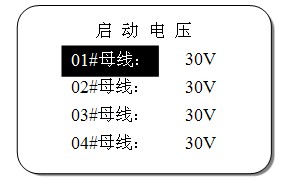 本菜單設(shè)置選線的啟動電壓值,按上下方向鍵移動光標選擇需修改的參數(shù)項,按確認鍵進入修改狀態(tài),此時按方向鍵修改參數(shù),修改后按“確認”鍵保存,按“取消”鍵不做保存。