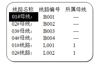 本菜單設(shè)置線路及母線的編號以及線路歸屬于哪條母線。