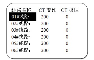 本菜單設(shè)置線路的CT變比及極性。按左右鍵翻頁,按上下方向鍵移動光標選擇需修改的參數(shù)項。按確認鍵進入修改狀態(tài),此時按方向鍵修改參數(shù),按確認鍵修改下一個參數(shù)。修改后按“確認”鍵保存,按“取消”鍵不做保存。