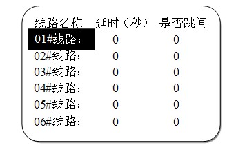 本菜單設(shè)置線路的跳閘參數(shù)。按左右鍵翻頁,按上下方向鍵移動光標選擇需修改的參數(shù)項。按確認鍵進入修改狀態(tài),此時按方向鍵修改參數(shù),按確認鍵修改下一個參數(shù)。修改后按“確認”鍵保存,按“取消”鍵不做保存。