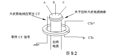 電纜外皮接地線的接地點在零序互感器上方時,電纜外皮接地線必須穿過CT后在線路側(cè)接地;接地點在零序互感器下方時,電纜外皮接地線則不能穿過零序互感器。