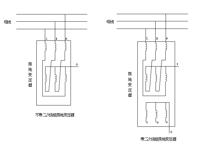 接地變壓器是三相變壓器(三相電抗器),用來為無中性點(diǎn)的系統(tǒng)提供一個(gè)人為的、可帶負(fù)載的中性點(diǎn),與消弧線圈組合接地。接地變壓器可帶一個(gè)連續(xù)使用的二次繞組(低壓繞組0.4KV)作為站用電源,容量可從由用戶決定。接地變壓器絕緣形式有兩種選擇:干式、油浸式。其工作原理見下圖: