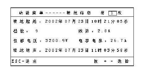 接地信息—“接地信息”用于調(diào)出存儲(chǔ)的接地故障信息,顯示在LCD屏上供瀏覽。按“+”、“–”瀏覽以前接地信息,按“放棄”鍵,顯示屏返回到當(dāng)前參數(shù)的顯示。